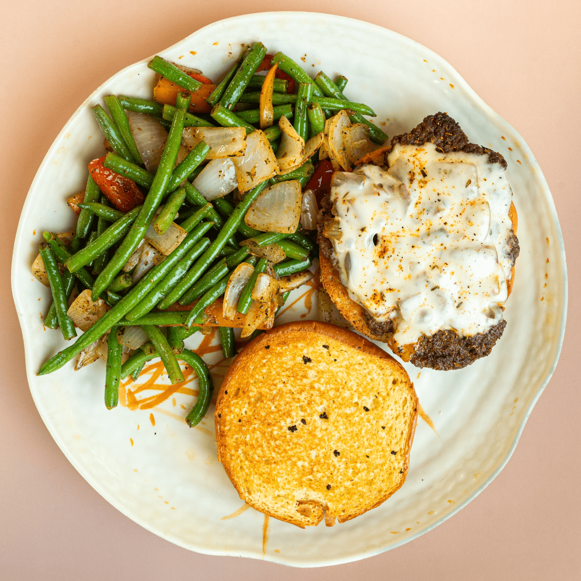 Hidden gem! Steak was seasoned to perfection. the baked potato was so hot butter melted right away andthegreen beans were delicious.